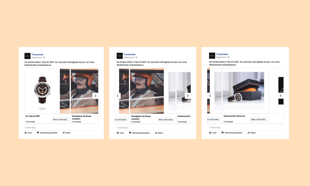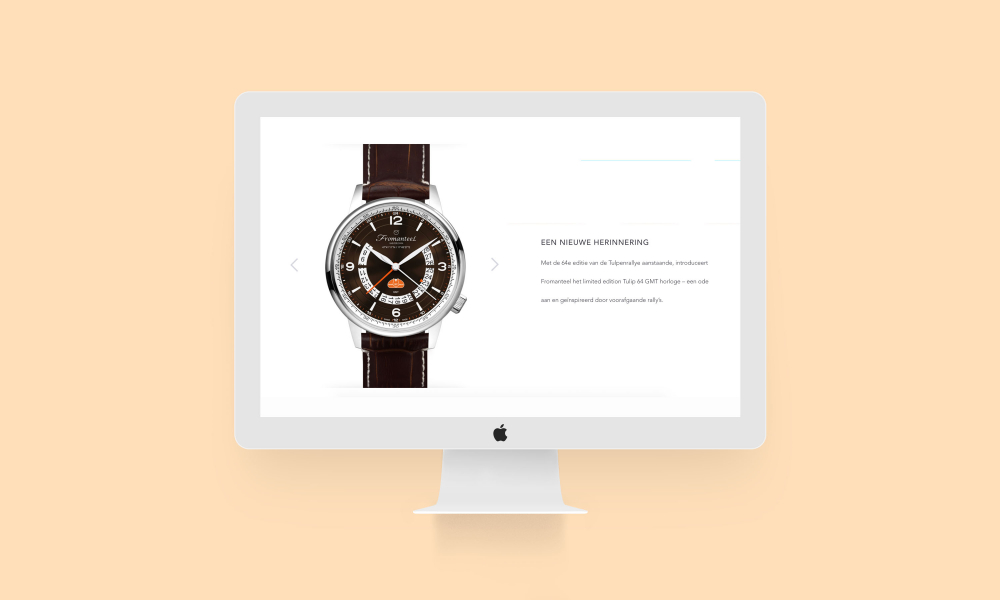 The Tulpenrallye is the oldest Dutch classic car competition. In honor of their 64th edition, the watch brand Fromanteel was asked to design an exclusive limited edition watch. The project started with a singe product sketch and a product name - the Tulip 64 GMT. Together with a graphic designer, we created a unique story behind the watch to make it succeed amongst the target audience. With the concept "The Memories Remain", we successfully designed a website, print work and multiple social media campaigns.